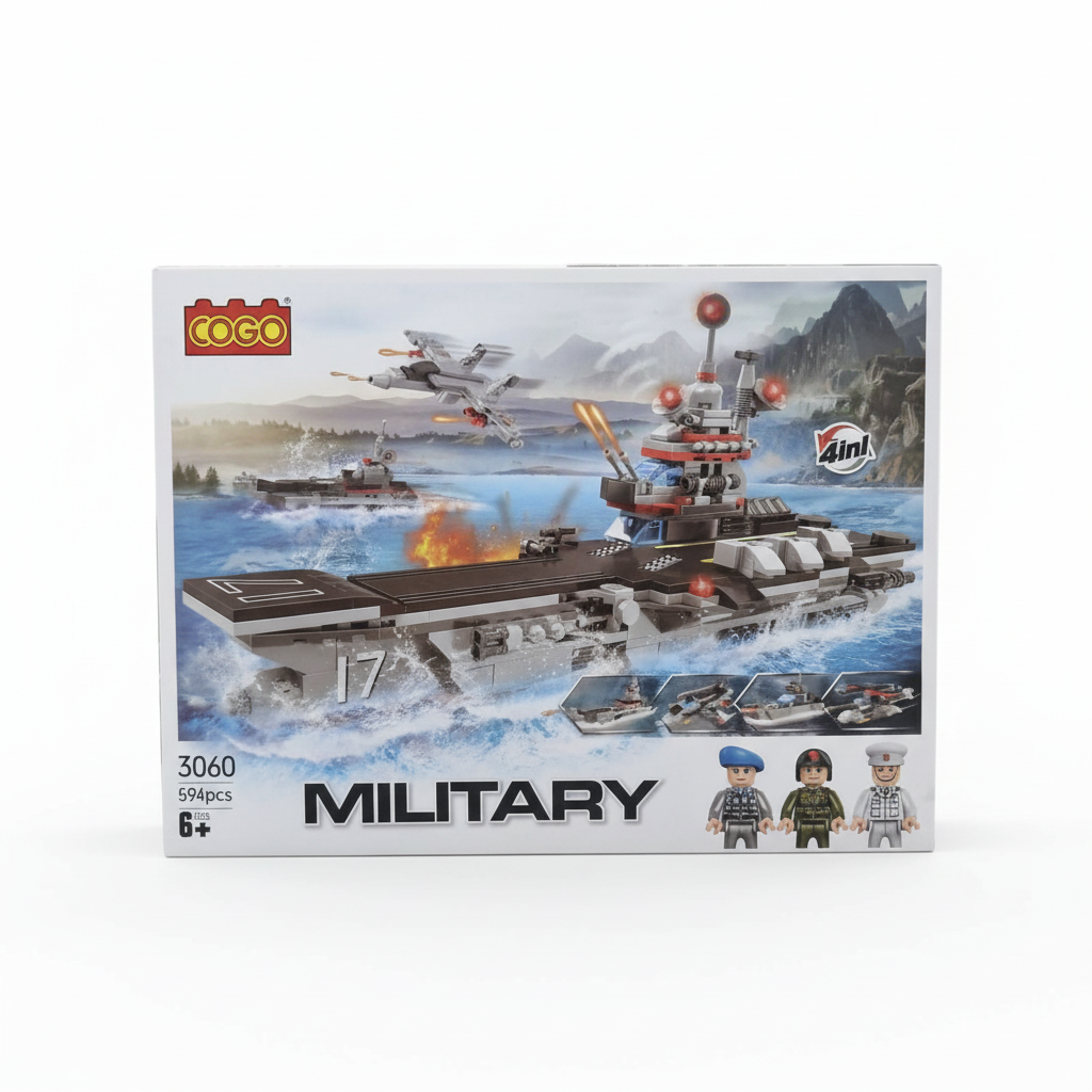 COGO’nun 594 parçalık 4-in-1 Askeri Uçak Gemisi Yapım Seti, deniz ve hava operasyonlarını bir arada seven çocuklar için tasarlandı! Set, dev bir uçak gemisi, savaş uçakları ve askeri detaylarla donatılmış etkileyici bir oyun deneyimi sunar. Üstelik parçalar birden fazla model oluşturacak şekilde tasarlanmıştır — çocuklar ister uçak gemisi, ister farklı askeri araçlar yapabilir!