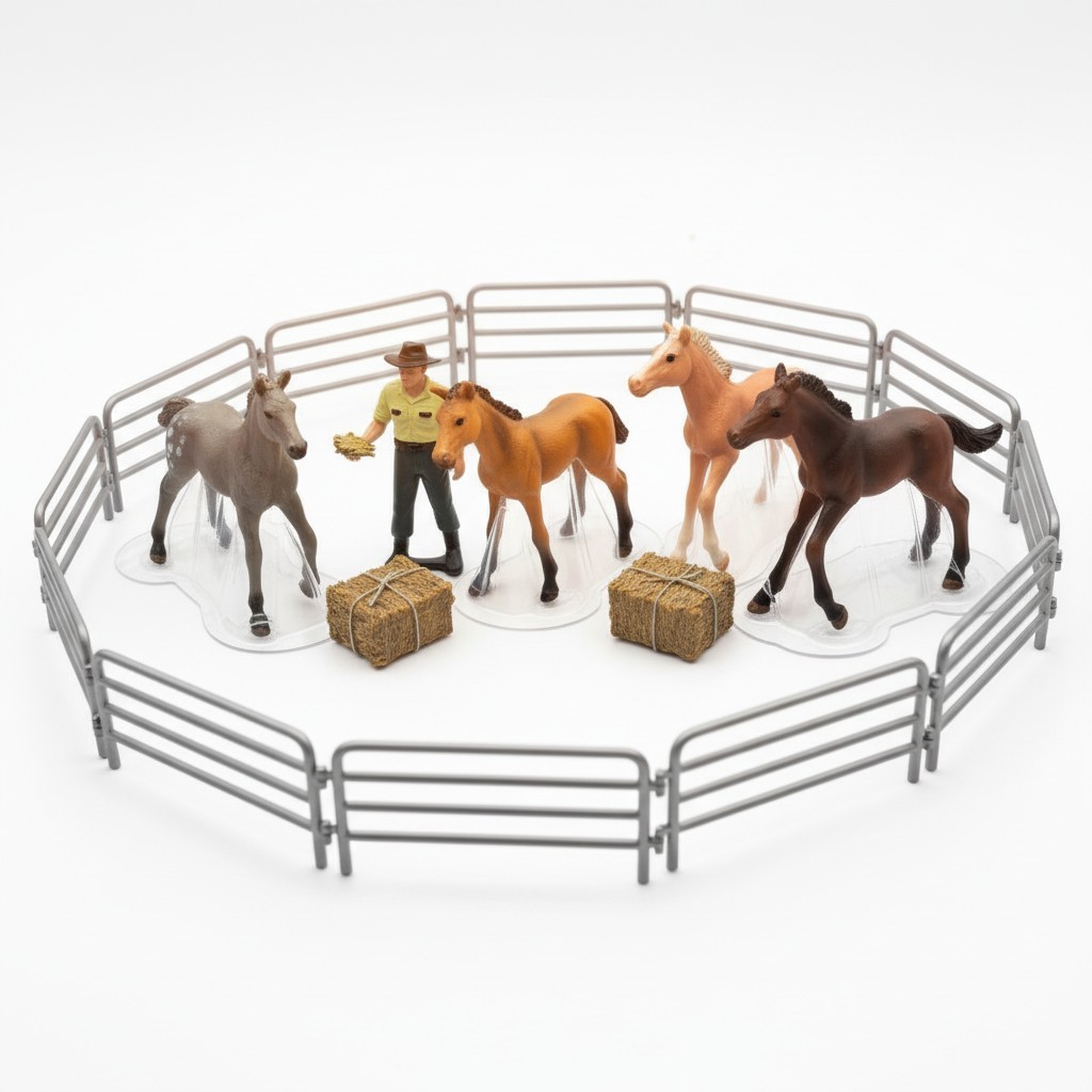 Çiftlik hayatının en sevilen hayvanlarından atlar, bu detaylı oyun setiyle çocukların dünyasına geliyor. Farklı at figürleri ve çiftlik görevlisi ile zenginleştirilen bu set, gerçekçi ve eğlenceli bir oyun deneyimi sunar.