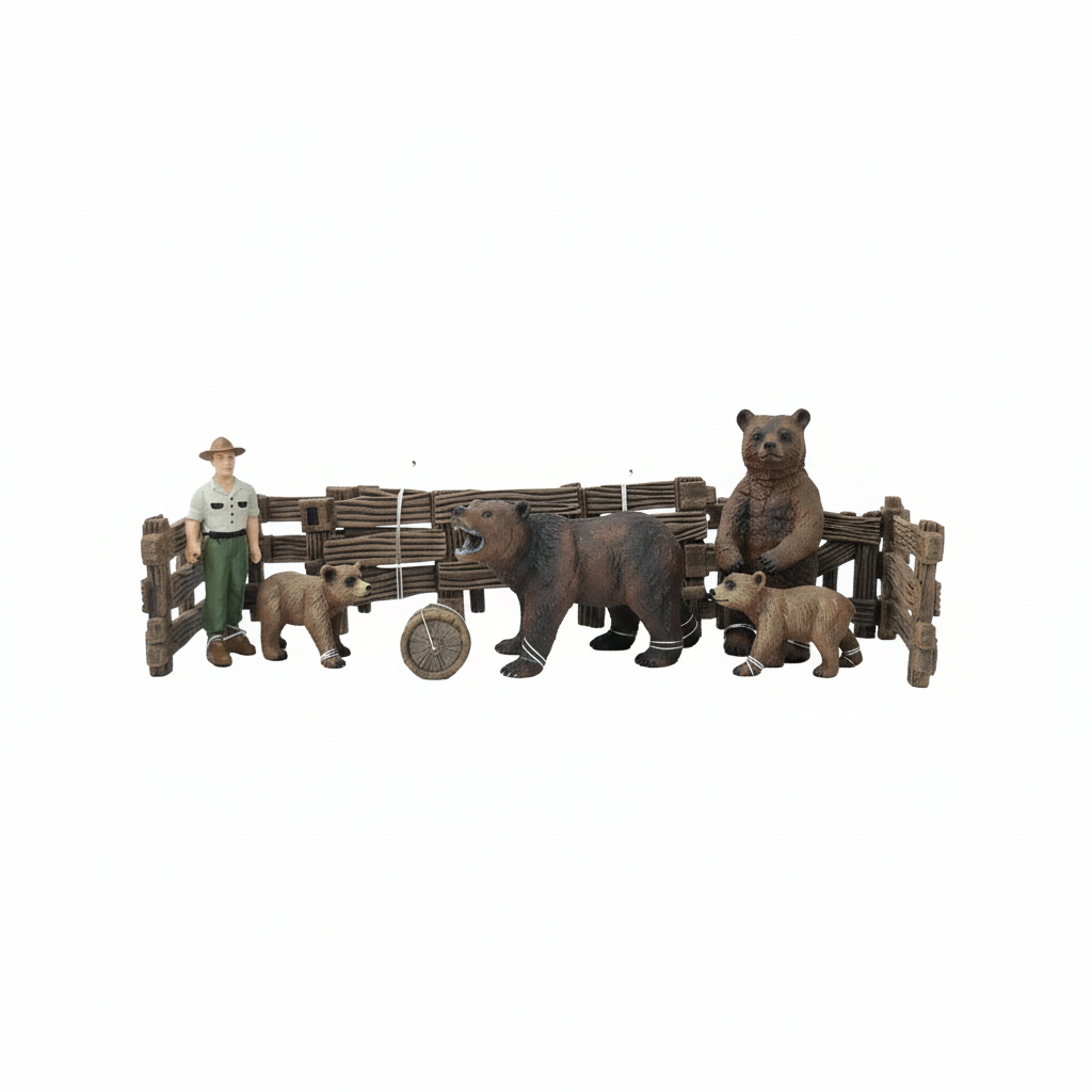 Vahşi Yaşam Figürleri: Set içerisinde farklı boyutlarda gerçekçi boz ayı figürleri yer almaktadır.