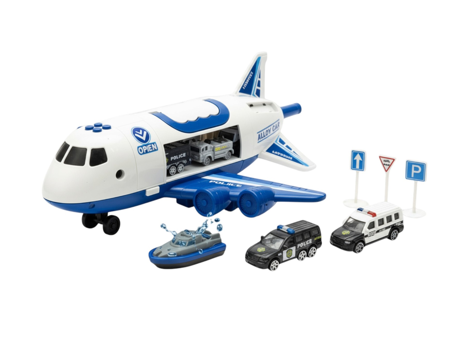 Gerçekçi tasarım: Polis uçağı, açılabilir gövdesiyle içerisine mini araçları alabilir.