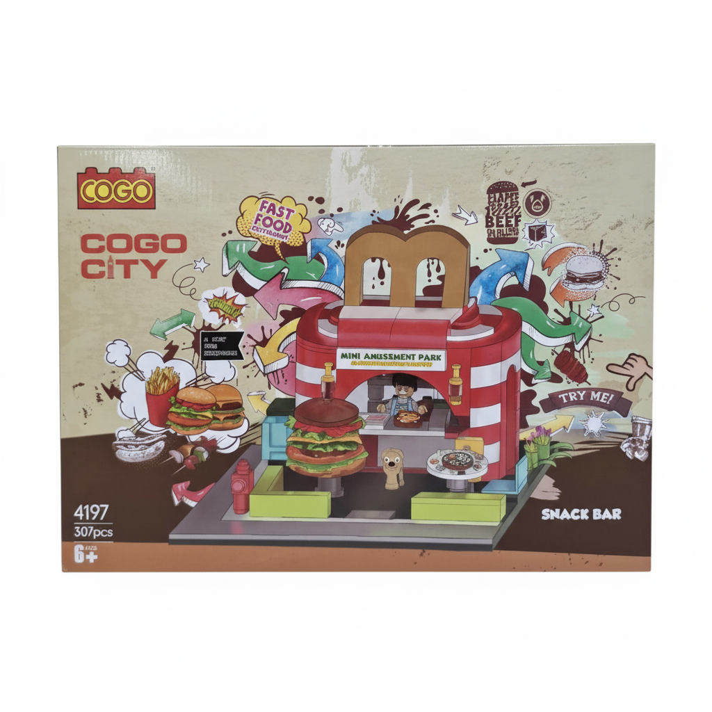 COGO City serisinin bu renkli setiyle minikler, kendi fast food restoranlarını inşa ederken hem eğleniyor hem de motor becerilerini geliştiriyor!