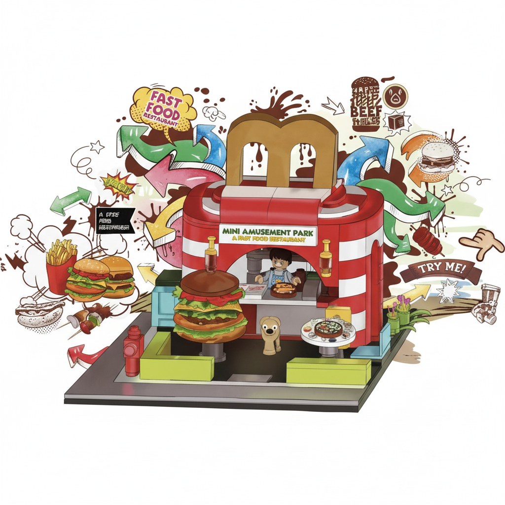 Yaratıcı Tasarım: McDonald’s tarzı ikonik bir kutu görünümünde tasarlanan restoran, açılıp kapanabilen detaylarıyla oyun keyfini artırır.