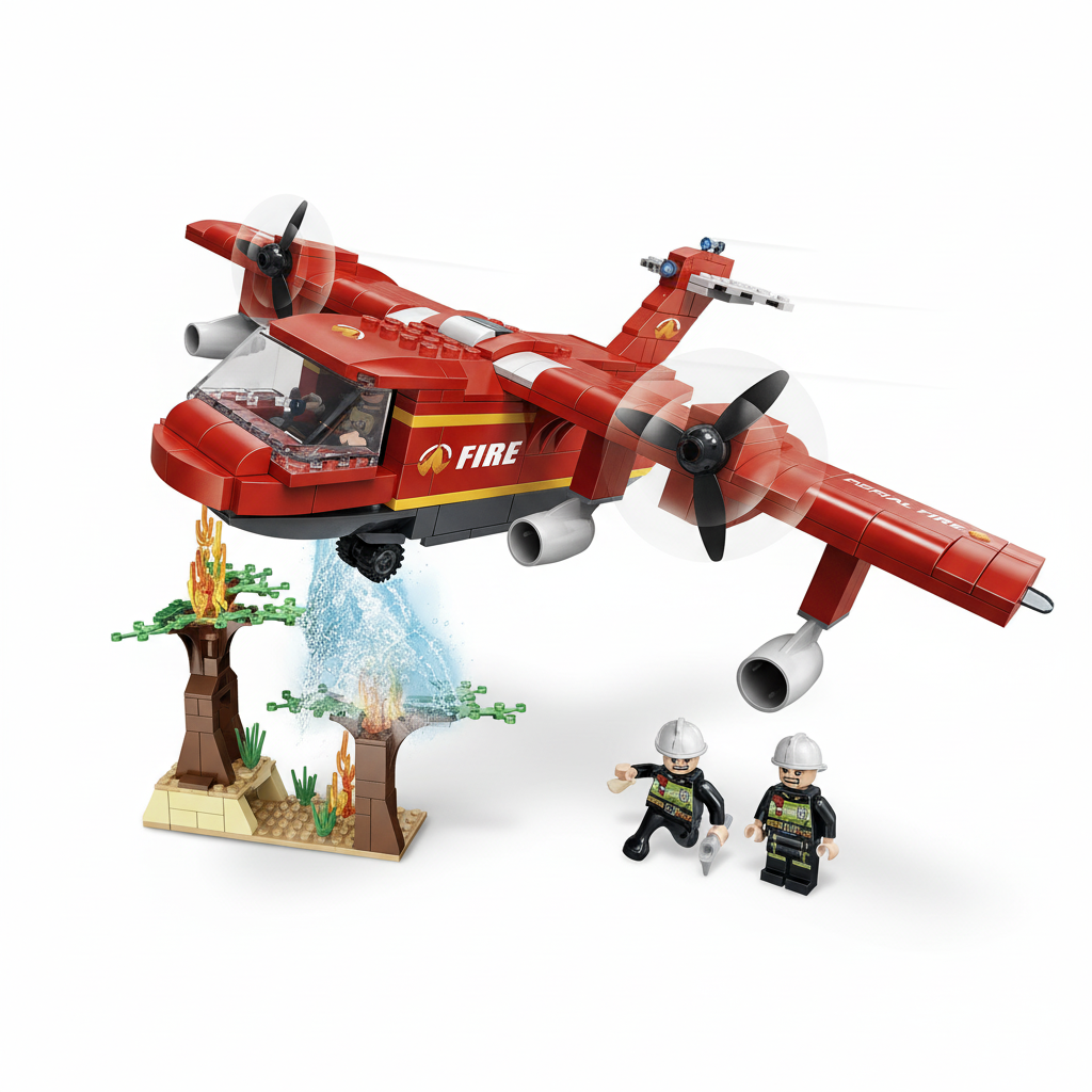 Gerçekçi detaylara sahip itfaiye uçağıyla orman yangınlarını söndürmek artık çocukların kontrolünde! Kanat altındaki motorlar, su bırakma bölümü ve hareketli parçalar sayesinde set, hem eğlenceli hem de öğretici bir oyun sağlar.
