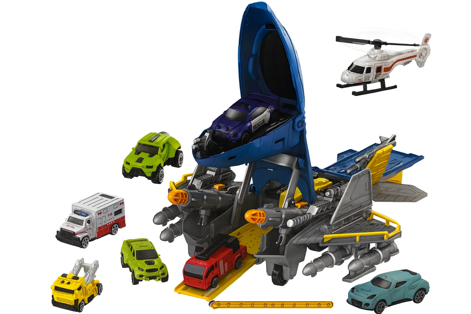 Bu uçak sürprizleriyle çocukları şaşırtıyor. Açılıp nakliye aracına dönüşüyor, mini roket rampaları, roket fırlatıyor.