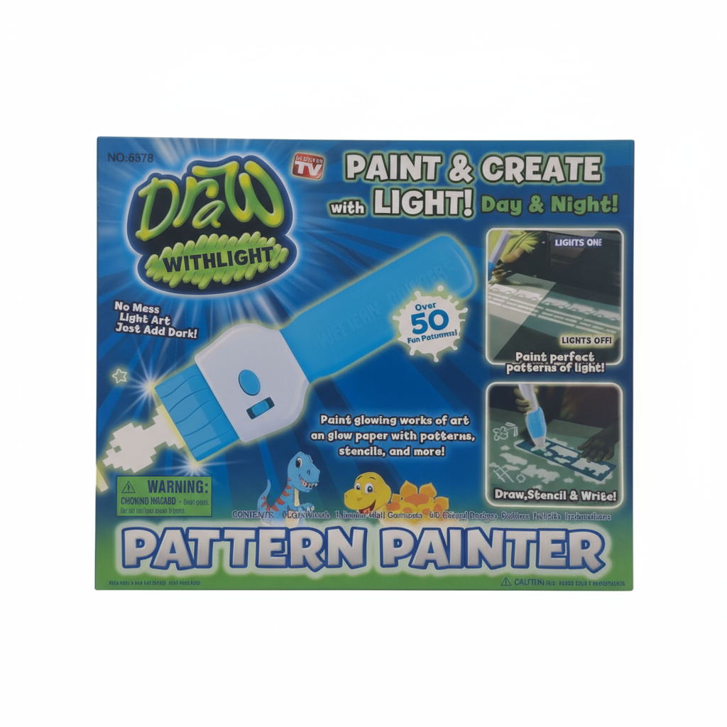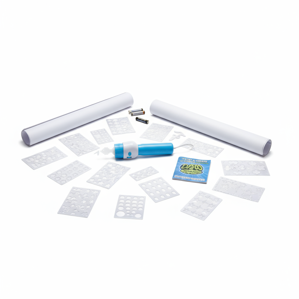 İçerik: Işık kalemi, özel çizim yüzeyi, stencil (şablon) seti