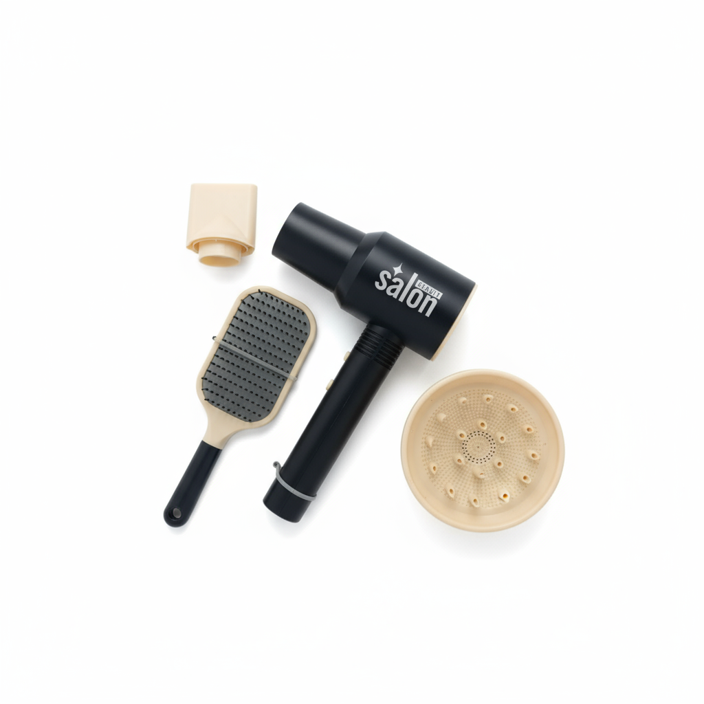 Gerçekçi Tasarım: Saç kurutma makinesi, tarak, difüzör ve başlık aparatıyla gerçek bir kuaför seti deneyimi.