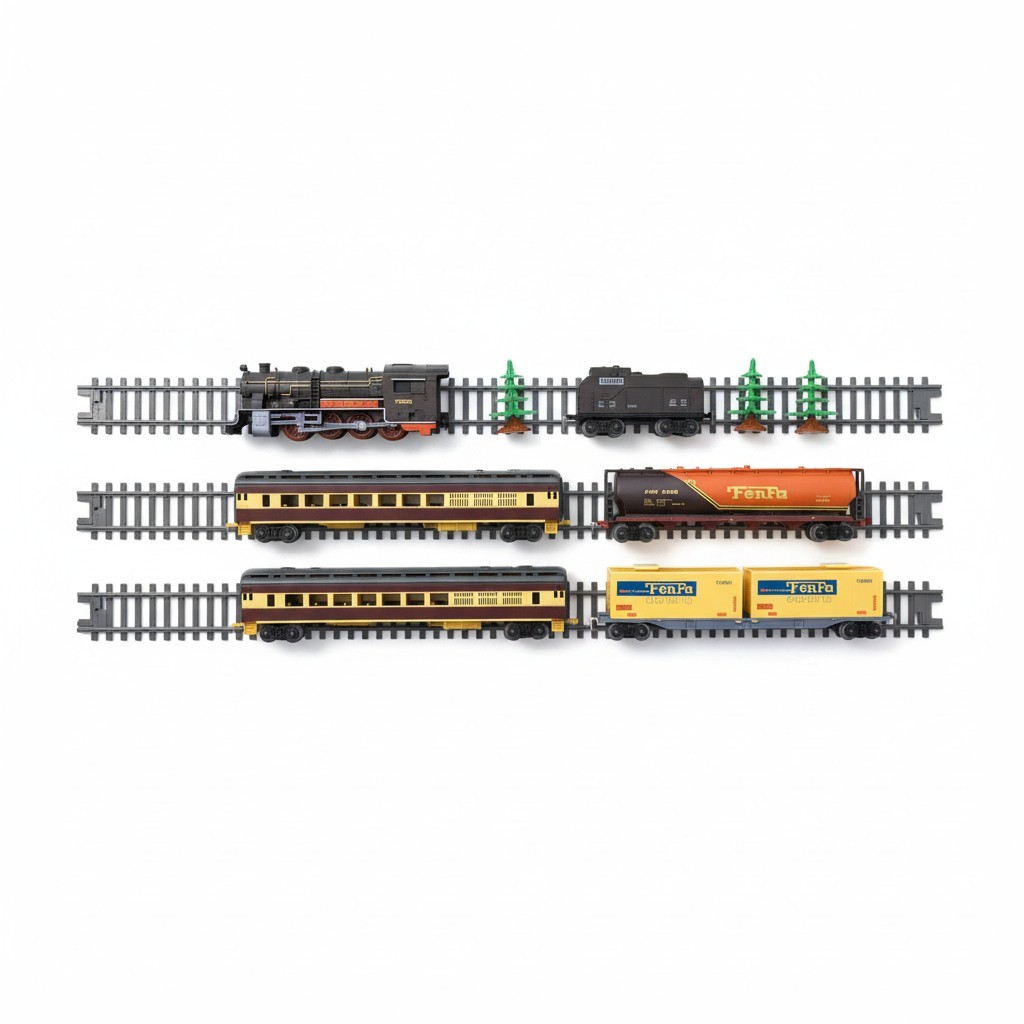 Zengin Set İçeriği: Set içerisinde 1 adet güçlü lokomotif, yolcu vagonları, yük vagonu ve manzarayı tamamlayan minyatür ağaç figürleri bulunmaktadır.