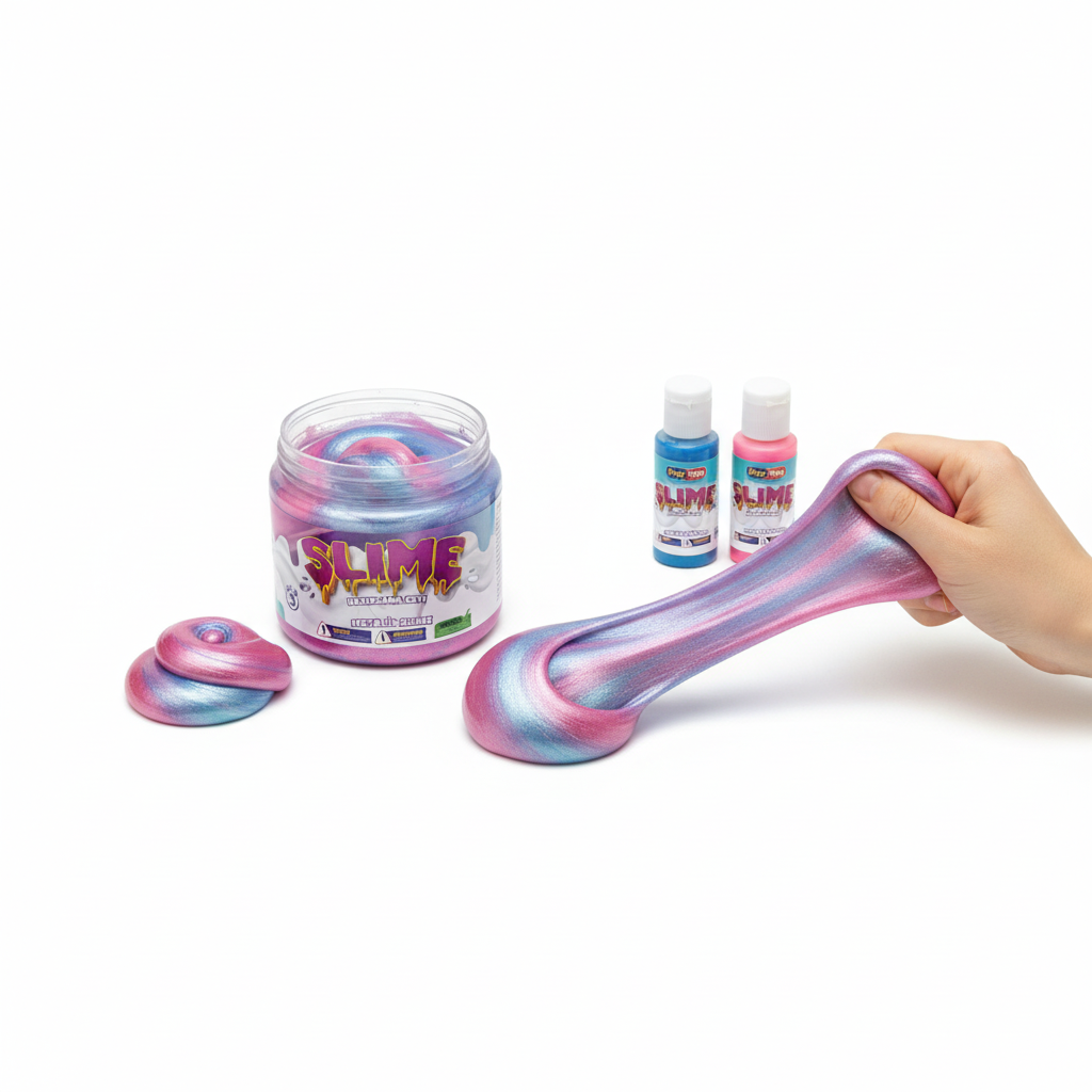 Metalik Parlaklık: Sıradan slimelardan farklı olarak, göz alıcı metalik renkleri ve ışıltılı dokusuyla dikkat çeker.