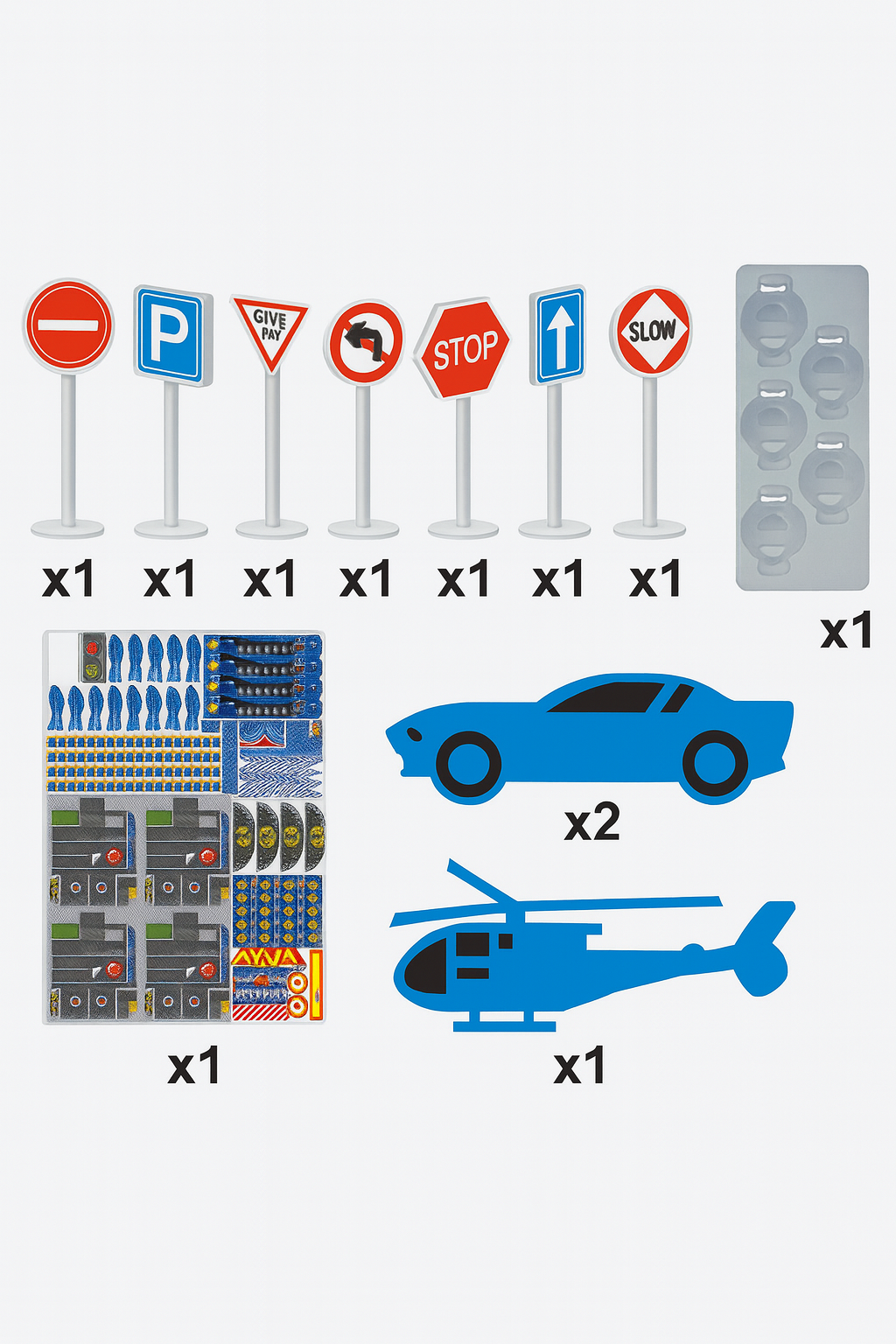 4 katlı otopark seti, 78 parçadan oluşmakta olup , 1 adet helikopter ve 2 adet araç içermektedir.