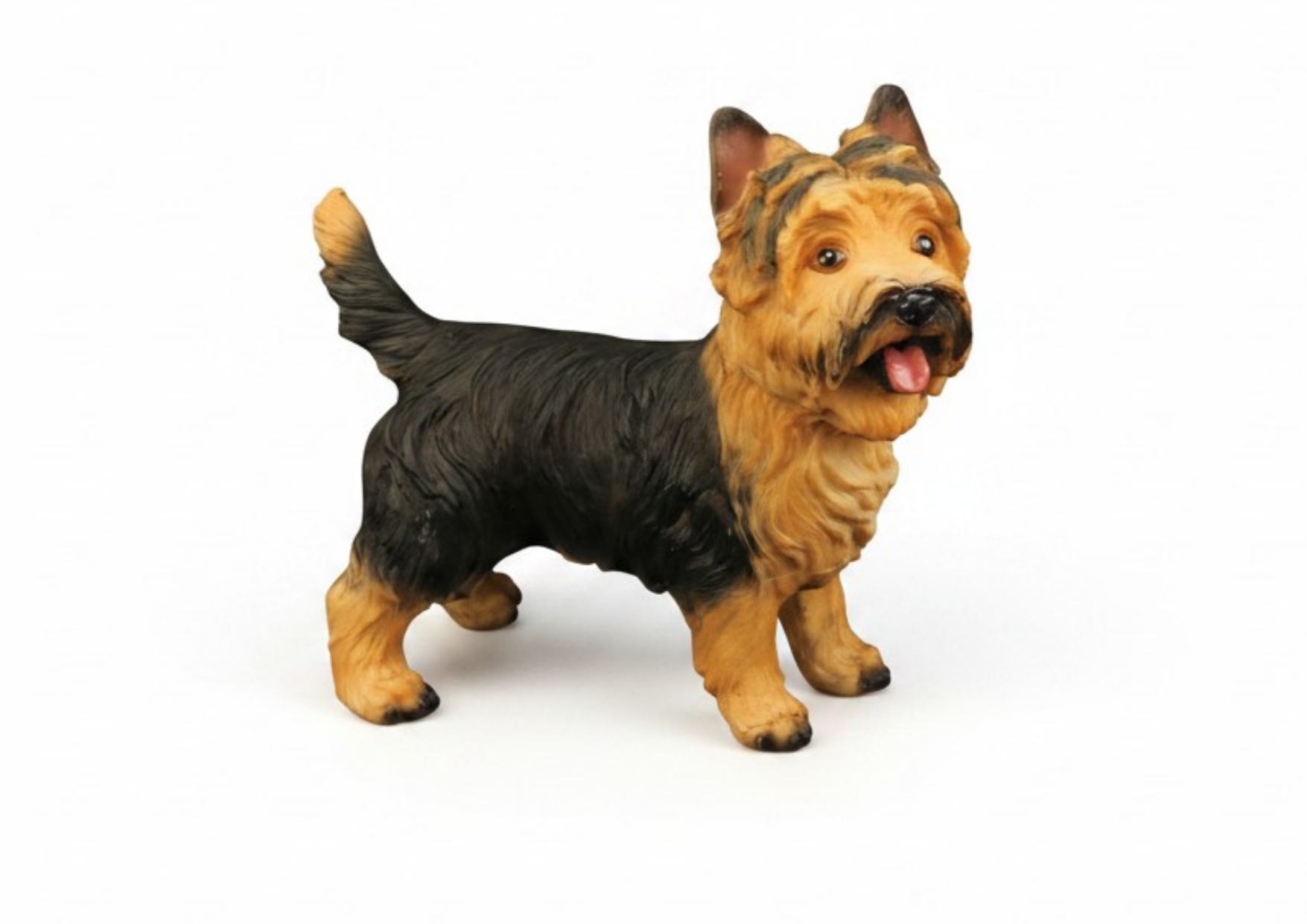 Sevimli görünümü ve enerjik duruşuyla öne çıkan Yorkshire Terrier figürü, küçük ırk köpeklerin karakterini başarılı şekilde yansıtır. Gerçekçi detayları ve canlı ifadesiyle çocukların ilgisini anında çeker.