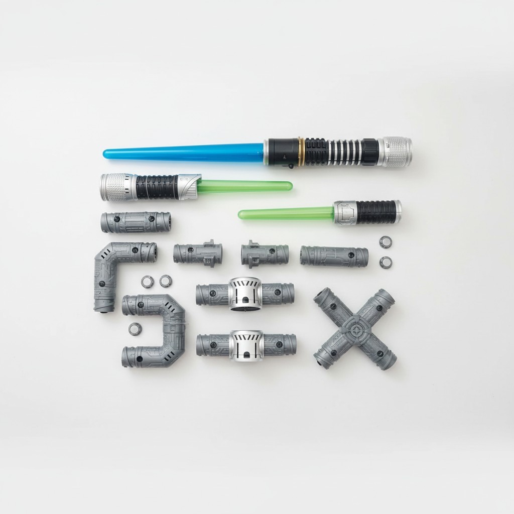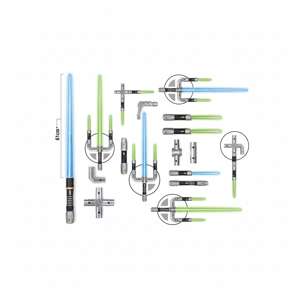 Sonsuz Kombinasyon: Set içerisinde yer alan farklı bağlantı aparatları (dirsekler, çapraz bağlantılar ve uzatmalar) sayesinde ışın kılıcını klasik bir kılıçtan, çift taraflı bir mızrağa veya çok yönlü bir savunma silahına dönüştürebilirsiniz.