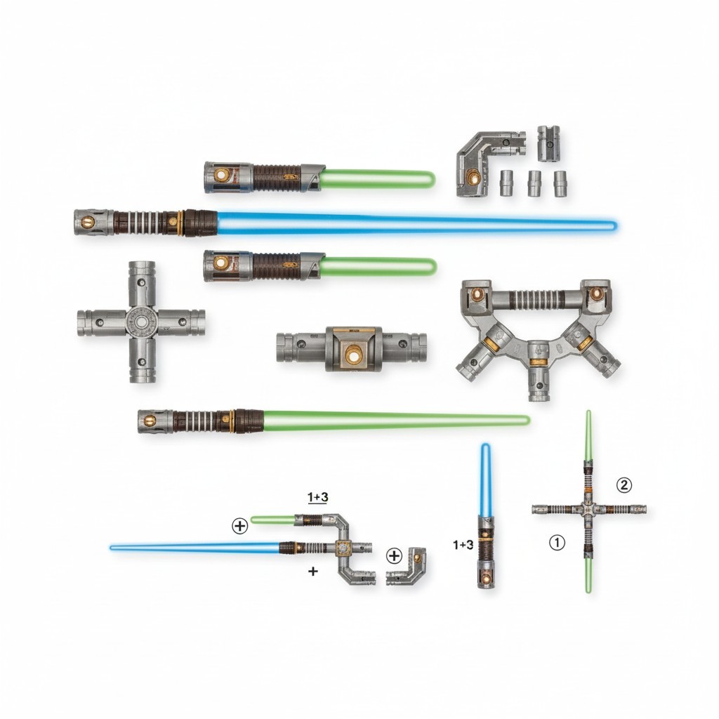 100+ Farklı Kombinasyon: Set içerisindeki bağlantı parçaları, farklı boylardaki kılıçlar ve kabzalar sayesinde 100'den fazla farklı varyasyon oluşturulabilir. İster çift taraflı bir kılıç, ister üçlü bir savunma seti yapın!