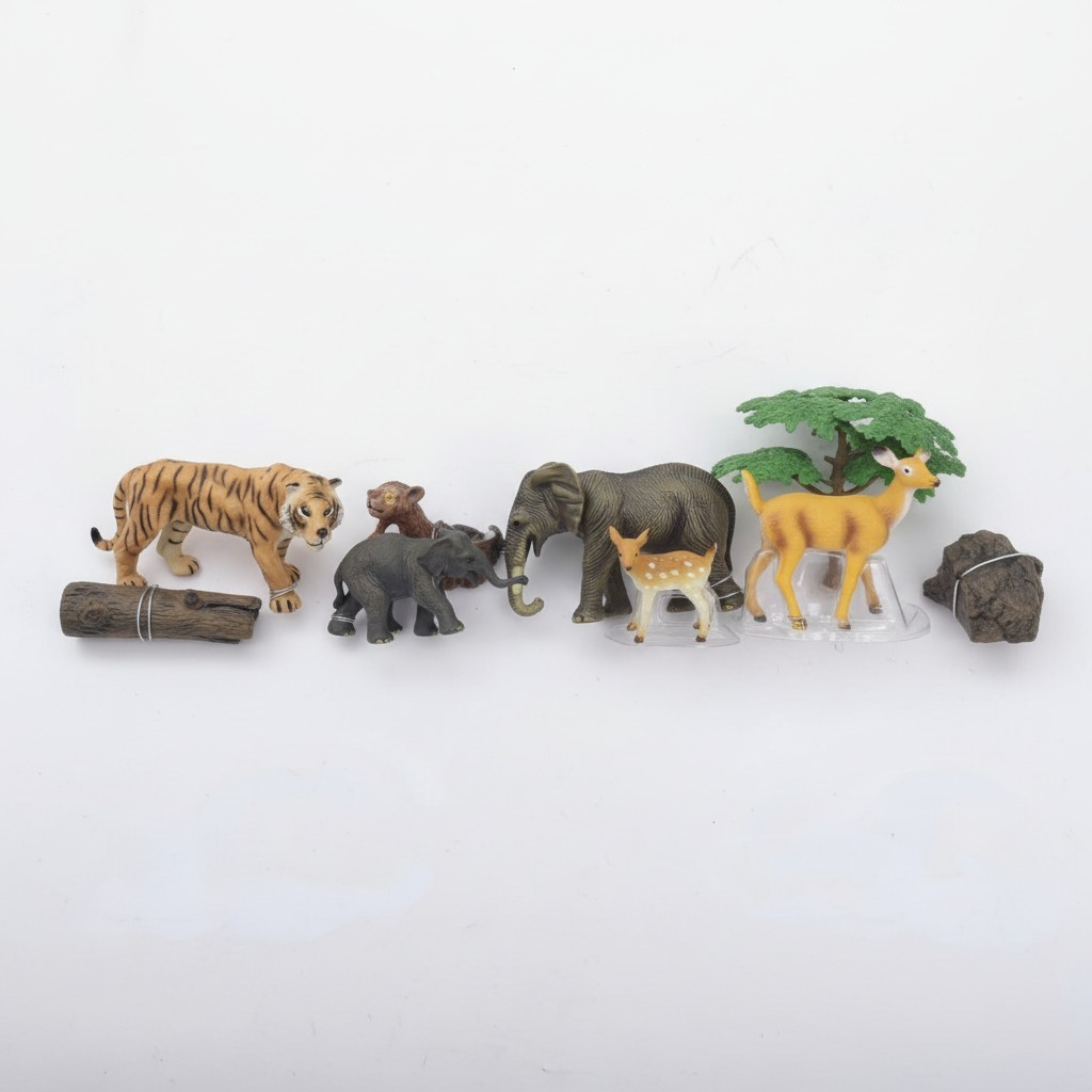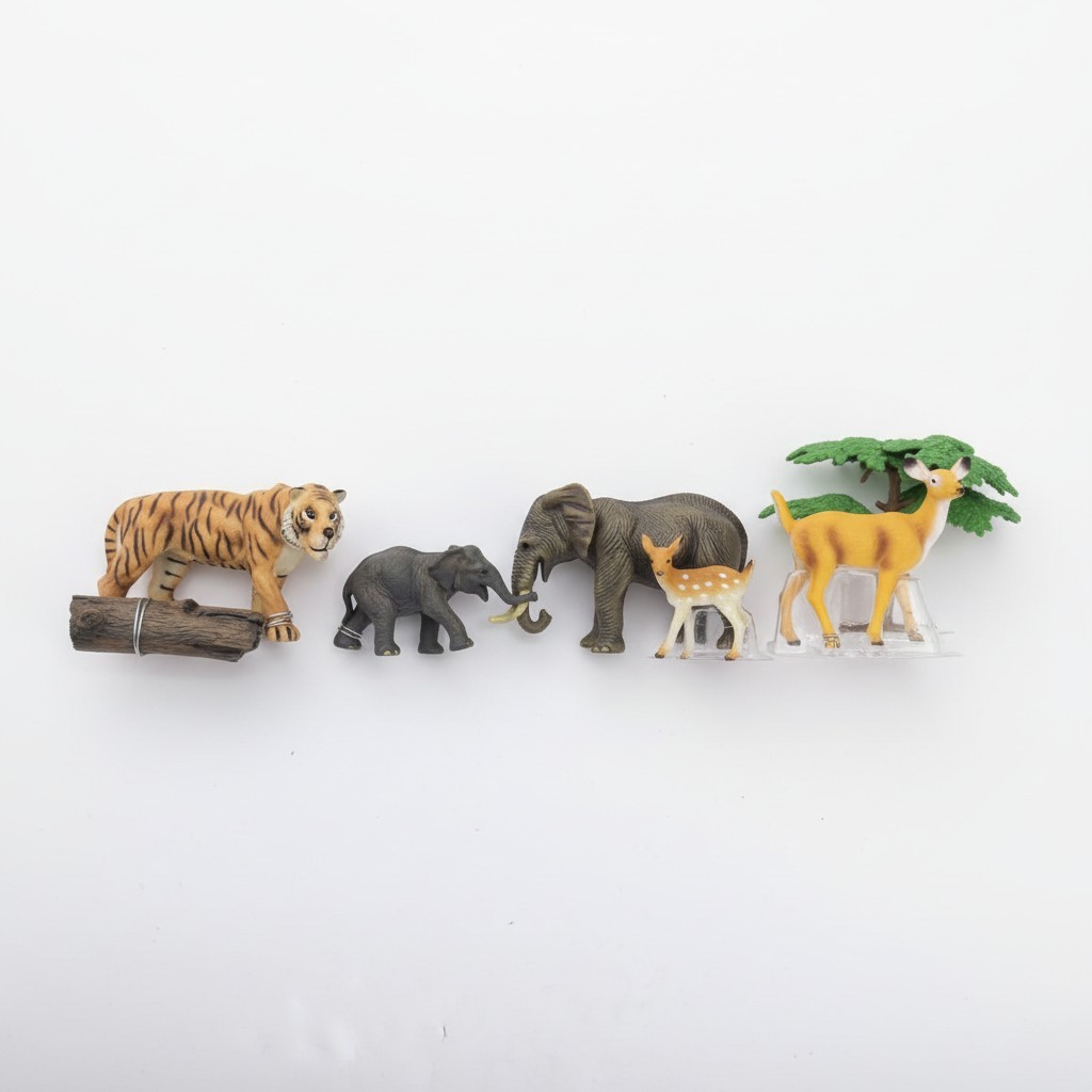 Vahşi doğanın güçlü ve zarif canlıları bu özel setle bir araya geliyor. Kaplan, fil ve geyik gibi farklı türleri içeren bu set, çocukların hayal gücünü geliştiren zengin bir oyun deneyimi sunar.